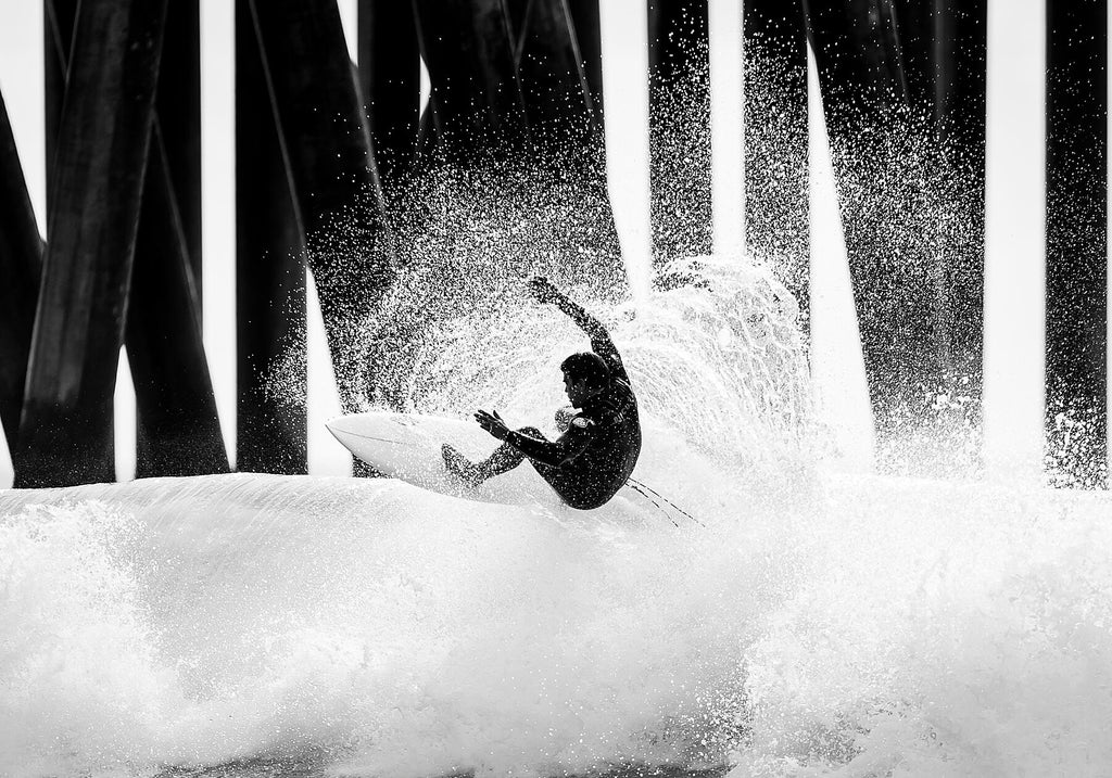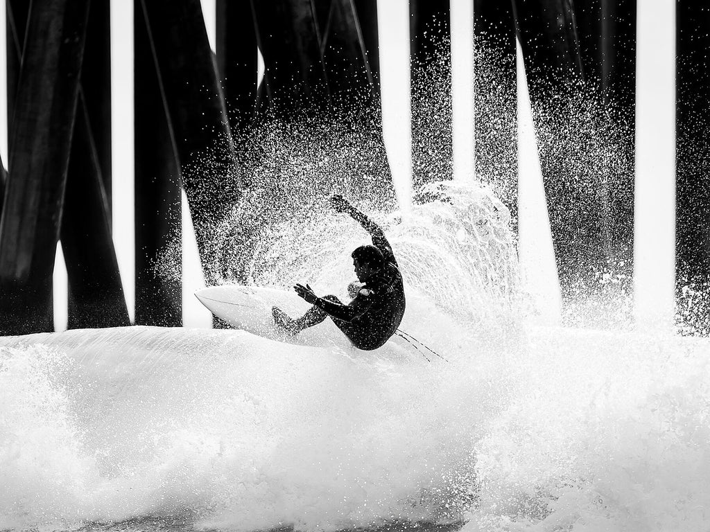 This internationally awarded black-and-white surfer photo captures a powerful turn at the top of a wave—a striking moment of grace, intensity, and flow, frozen in time. Shot from the shoreline with a deep connection to the rhythm of the sea, this image is more than surf photography—it’s a reflection of flowing with The Spirit of God, where power meets peace, and motion meets stillness.